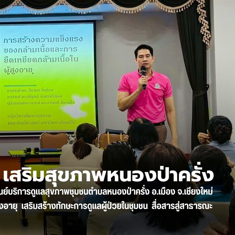 ตำบลหนองป่าครั่ง เป็นพื้นที่ชานเมืองที่รองรับการขยายตัวออกนอกตามแนวราบของเมืองเชียงใหม่ช่วงหลายสิบปีที่ผ่านมา ความเป็นเมืองที่เพิ่มขึ้นส่งผลให้มีการยกฐานะเป็นเทศบาลตำบล จึงกล่าวได้ว่าจุดเริ่มต้นของการพัฒนาเมืองหนองป่าครั่งอย่างจริงจังในทุกด้าน ปัจจุบันเทศบาลหนองป่าครั่งได้กำหนดวิสัยทัศน์ในการพัฒนาท้องถิ่นว่า “ประชาชนมั่งคั่ง หนองป่าครั่งมั่นคง” โดยมีนโยบายหลักสำคัญคือ การสร้างเมืองสุขภาวะเทศบาลตำบลหนองป่าครั่ง ประกอบด้วย นโยบายด้านการส่งเสริมอาชีพสร้างเศรษฐกิจชุมชน ตัดตั้งคลินิกชุมชนอบอุ่น ศูนย์กายภาพบำบัด โรงพยาบาลตำบล เป็นต้น การสร้างเมืองสุขภาวะของเทศบาลตำบลหนองป่าครั่งอยู่ภายใต้แนวคิด “การจัดสวัสดิการสังคม (Social Welfare)” ปัจจุบันเทศบาลตำบลหนองป่าครั่งมีสิ่งอำนวยความสะดวกด้านสุขภาพ ได้แก่ ศูนย์บริการสาธารณสุข (โรงพยาบาล) เปิดให้บริการเพื่อรักษาประชาชนในพื้นที่และรอบข้าง ศูนย์จำหน่ายสินค้าตำบลและการส่งเสริมอาชีพนวดแผนไทย คลินิกชุมชนอบอุ่น เพื่อดูแลผู้สูงอายุในชุมชน ให้คำปรึกษา สร้างอาสาสมัครกายภาพบำบัดเพื่อชุมชน เป็นต้น คณะศิลปศาสตร์จึงได้จัดโครงการบริการวิชาการ ภายใต้โครงการ ยกระดับการให้บริการศูนย์บริการดูแลสุขภาพชุมชนตำบลหนองป่าครั่ง อ.เมือง จ.เชียงใหม่ ประกอบด้วยกิจกรรม
