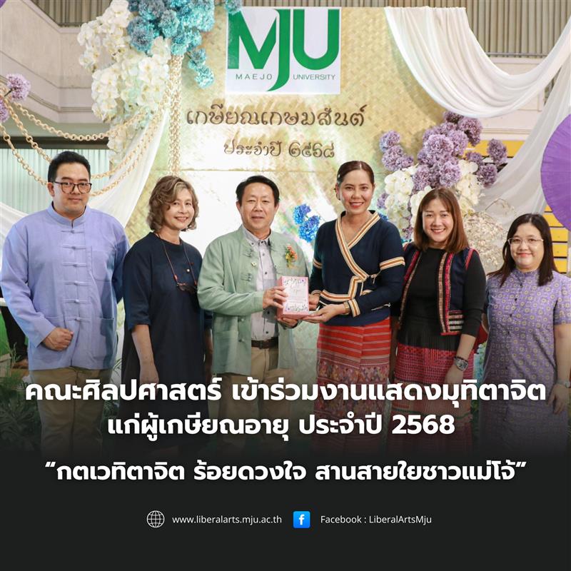วันพฤหัสบดีที่ 18 กันยายน 2568 ผู้ช่วยศาสตราจารย์ ดร.ชนาพร ขันธบุตร คณบดีคณะศิลปศาสตร์ พร้อมด้วยผู้บริหารและบุคลากรคณะศิลปศาสตร์ เข้าร่วมงานแสดงมุทิตาจิตแก่ผู้เกษียณอายุ ประจำปี 2568 “กตเวทิตาจิต ร้อยดวงใจ สานสายใยชาวแม่โจ้” เพื่อเป็นการแสดงความขอบคุณ ตระหนักถึงความสำคัญและความเสียสละ ร่วมน้อมคารวะต่อผู้อาวุโสที่ครบวาระเกษียณ ผู้สร้างคุณูปการต่อองค์กรและต่อสังคม โดยได้รับเกียรติจาก รศ.ดร.วีระพล ทองมา อธิการบดีมหาวิทยาลัยแม่โจ้ เป็นประธานในพิธีมอบโล่ประกาศเกียรติคุณและของที่ระลึก ณ ศูนย์กีฬาเฉลิมพระเกียรติ มหาวิทยาลัยแม่โจ้
