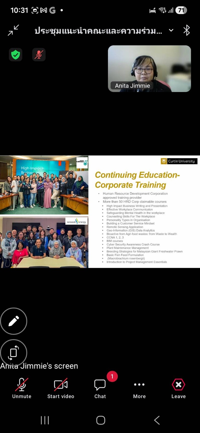 School of Pre-U and Continuing Education (SPACE) จาก มหาวิทยาลัยเคอร์ติน วิทยาเขตประเทศมาเลเซีย เพื่อหารือแนวทางการสร้างความร่วมมือทางวิชาการร่วมกันในอนาคต